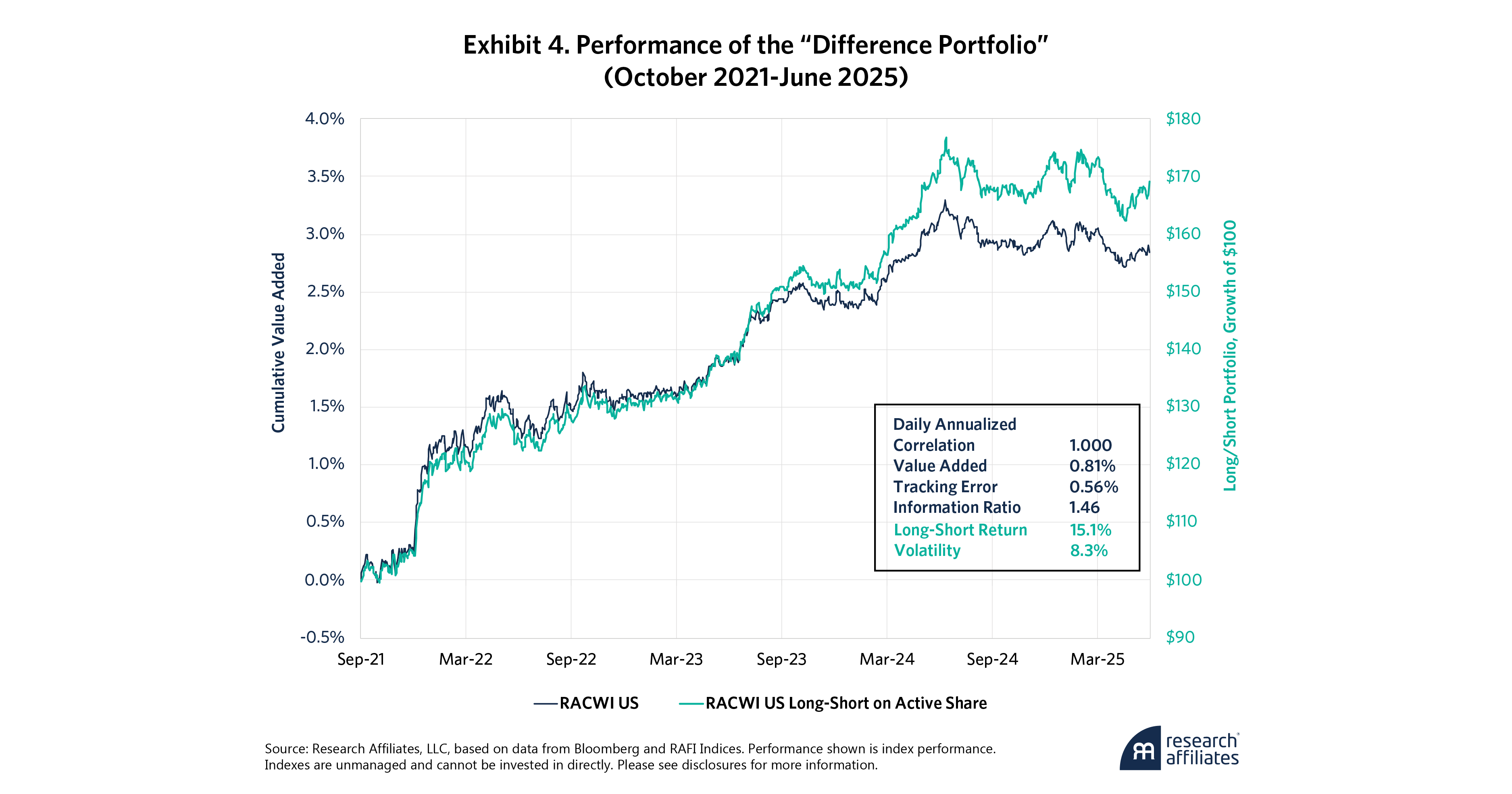 This pattern isn’t coincidental. When price volatility and dispersion surge, so does the cost of chasing trends and overpaying for recent winners. RACWI’s methodology helps mitigate those risks—not by trying to time volatility but by simply staying grounded in business fundamentals. The result is a structural advantage that may shine most brightly at the peak of market chaos.